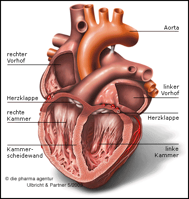 des Herzens. Da das Herz Blut gegen einen erhöhten Widerstand pumpen muss, vergrößsert sich die rechte Herzkammer und der rechte