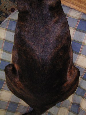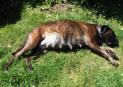 Das Gewicht der Welpen macht sich immer mehr bemerkbar.