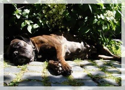 Am liebsten macht Aimée ausgedehnte Sonnenbäder im Garten.