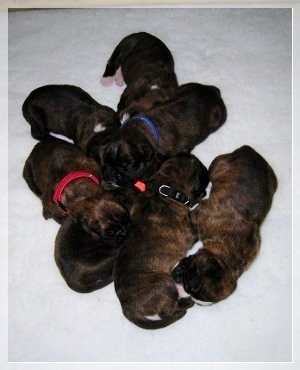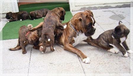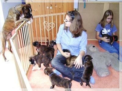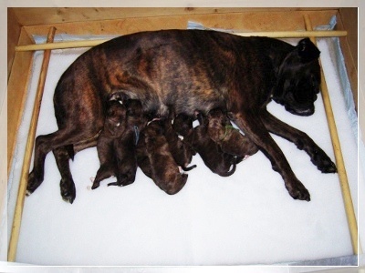 Aimée hat am Freitag, den 29.05.2009 völlig komplikationslos sieben gesunde Welpen zur Welt gebracht.